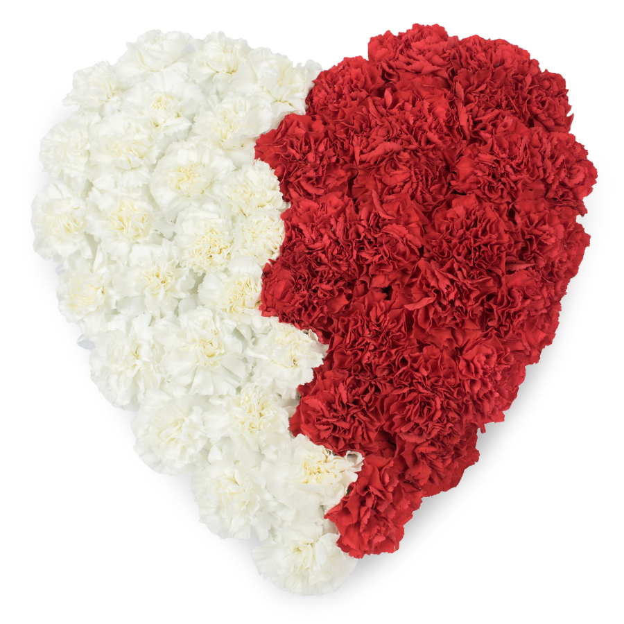 Discover the beauty and uniqueness of our Mixed Carnations Heart arrangement by Handy Flowers. This stunning bouquet features a harmonious blend of white and red carnations, perfect for expressing heartfelt sympathy.